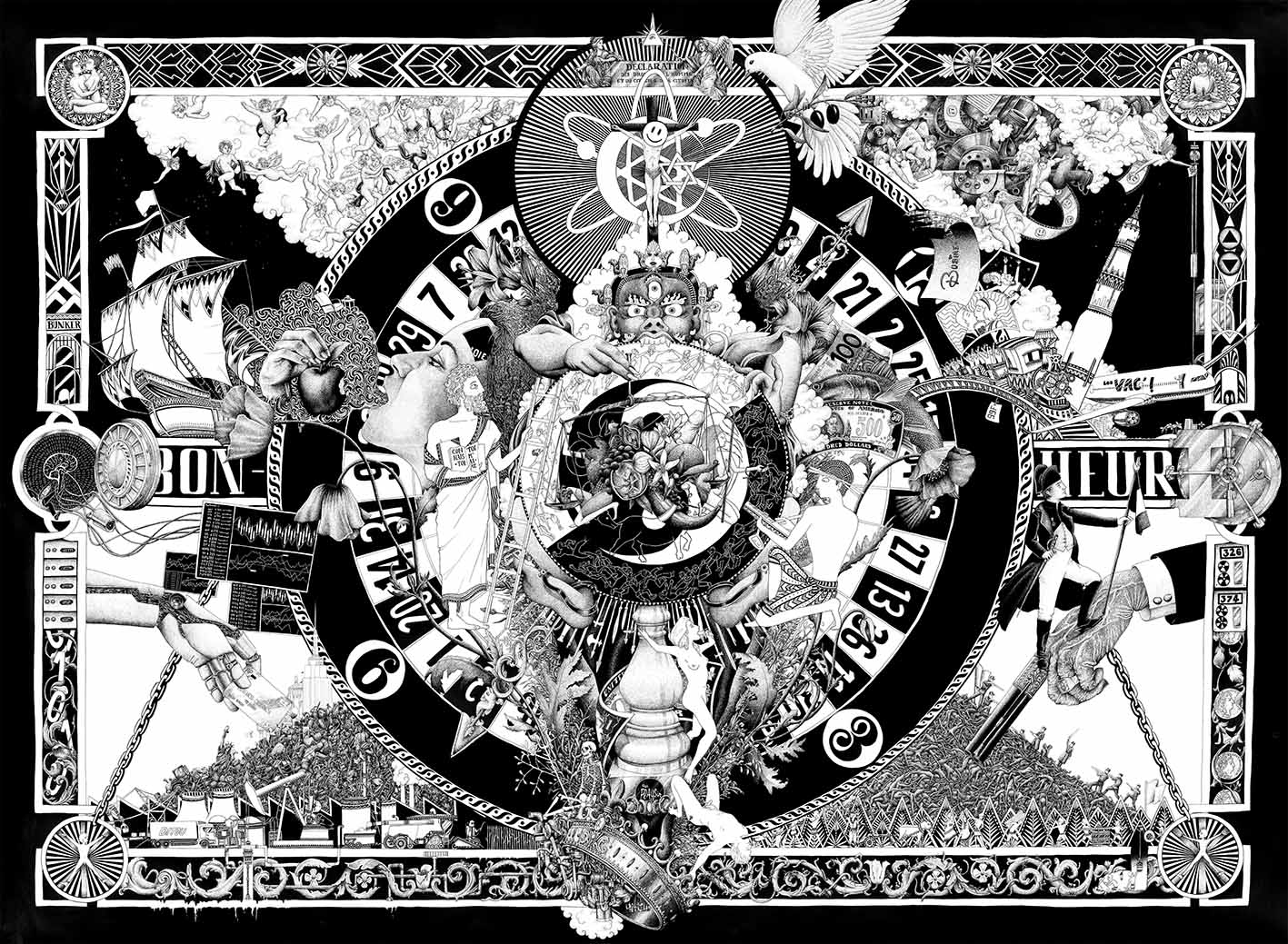 L’histoire du Bonheur Encre de chine et stylo feutre noir – 150×110 cm
